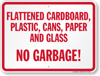 Keep trash out! Make sure no one confuses the recycling bin for the garbage with a No Trash Sign or Label. Signs act as deterrents and also as useful reminders for well-intentioned people. Recycling only works when trash and recyclables are divided, so make sure they are!