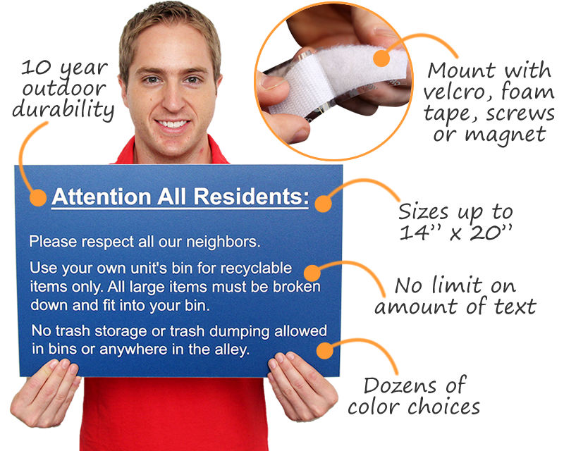 Our custom plastic signs come with foam adhesive strips for easy installation. We also offer adhesive-backed hook and loop fastener strips and magnetic tape at an additional cost, and you may opt for any of these during checkout.