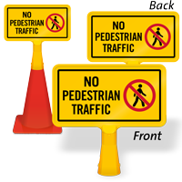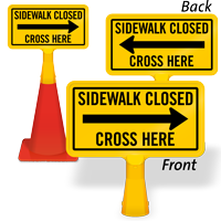 Size: 8" x 15" Material type: Reflective “No-Tip” Traffic Cone Sign - Two Sides Printed