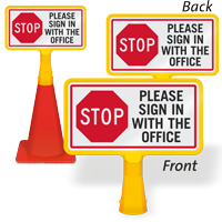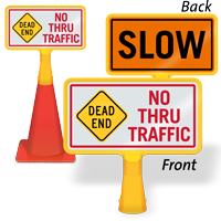 Size: 8" x 15" Material type: Reflective “No-Tip” Traffic Cone Sign - Two Sides Printed