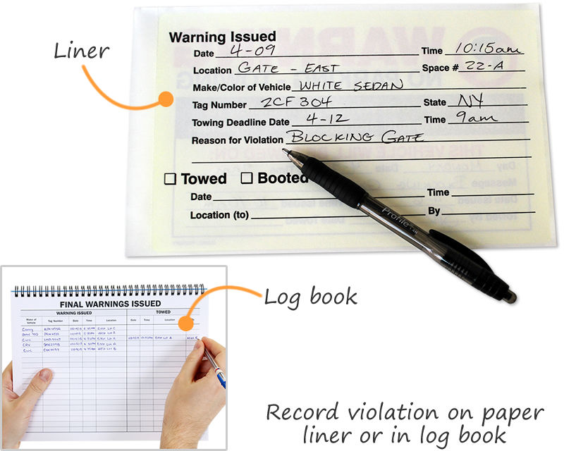 Yes, it is. Our parking violation stickers have a writable surface on which you may use a pen, pencil, or permanent marker. Many of these stickers feature specific fields for you to mention the date, time, and other details.