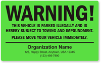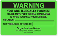 Of course, they can! We offer custom illegal parking stickers in different legends and fluorescent orange, yellow, and green colors. These can be easily personalized with a company name, logo, and contact information with the help of our user-friendly customization wizard.