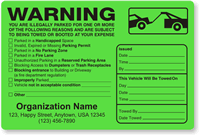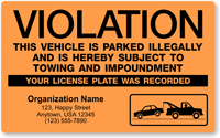 Boldest and Most Effective Parking Violation Stickers Online . Stop violators from using that tired excuse, "I never saw the warning". These extra-large 5" x 8" stickers have a fluorescent background that, studies have shown, get noticed 75% faster than other warnings.