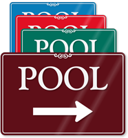 These are reversible or changeable signs used to indicate the current status of the pool. They are useful for temporary closures due to maintenance, weather, or chemical treatment. View our selection of pool open signs and pool closed signs.