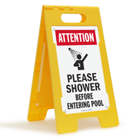 Some portable signs have interchangeable inserts, allowing you to switch between messages like "no lifeguard on duty" and "pool closed" using the same frame. You can also customize the insert using our custom swimming pool signs service.