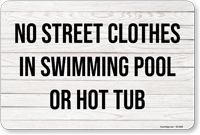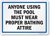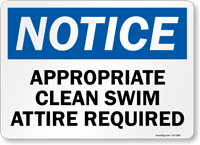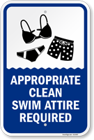 • • With a bold and clear message, these signs help maintain a safe and hygienic environment by preventing inappropriate attire, such as street clothes or underwear in the water.