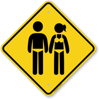 Cut-off jeans are prohibited because the frayed edges shed rapidly, clogging pumps. metal rivets on jeans can also scratch water slides or pool surfaces. You can include this specific warning on custom swimming pool signs.