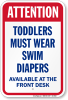 Yes, they often include a line requiring swim diapers for infants, reinforcing that regular disposable diapers (which disintegrate in water) are not considered proper swim wear.