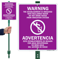 Compliant reclaimed water signs must be used at access or entry points to your property. Install Reclaimed Water Signs on your property to inform workers, visitors, passersby etc about the reclaimed or recycled water in use and ask them not to consume it.