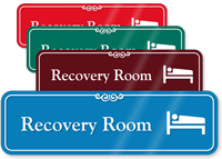• • Simple room name signs identify recovery rooms and can be placed outside the door. Recovery room signs are available in a variety of colors and styles to match the hospital's theme.