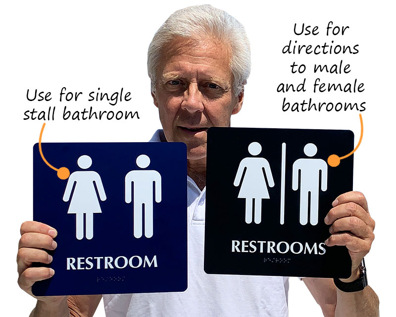• • If you can't find the bathroom signs you need, you can create a custom sign to match your requirements or contact us for further assistance.