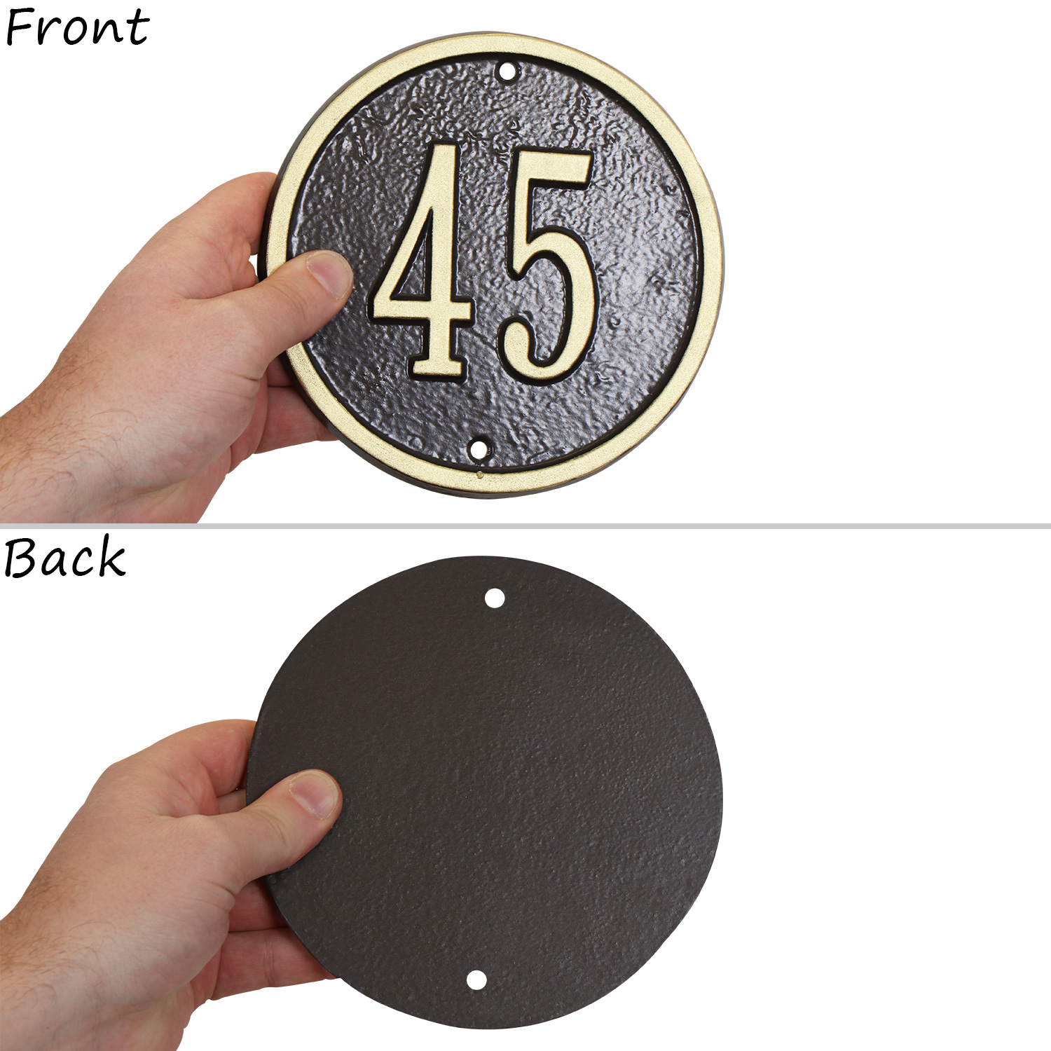 The Whitehall Products 6" Round Petite Wall Address Plaque is a simple yet posh way to display your address. The address plaque is made from rust-free cast aluminum providing excellent durability and quality.