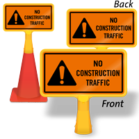 Size: 8" x 15" Material type: Reflective “No-Tip” Traffic Cone Sign - Two Sides Printed