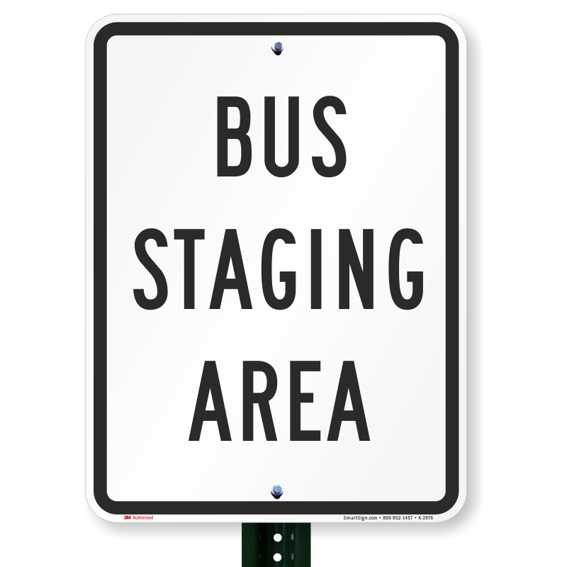 Use a "bus staging area" sign to convey your message. Signs improve the safety of your environment.