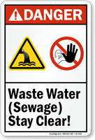 Place an obvious warning near sewage discharge areas, septic fields, and treatment facilities, so no one ever tries to go swimming. Sewage warning signs are available in a variety of sizes to prevent accidental exposure to unsafe water.