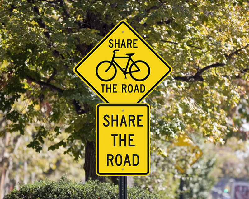 • • These MUTCD Share the Road Signs are the same that we sell to our large public customers such as cities or counties. Made from heavy duty 80 mil thick aluminum and branded 3M reflective films, these designs outlast weather and abuse.