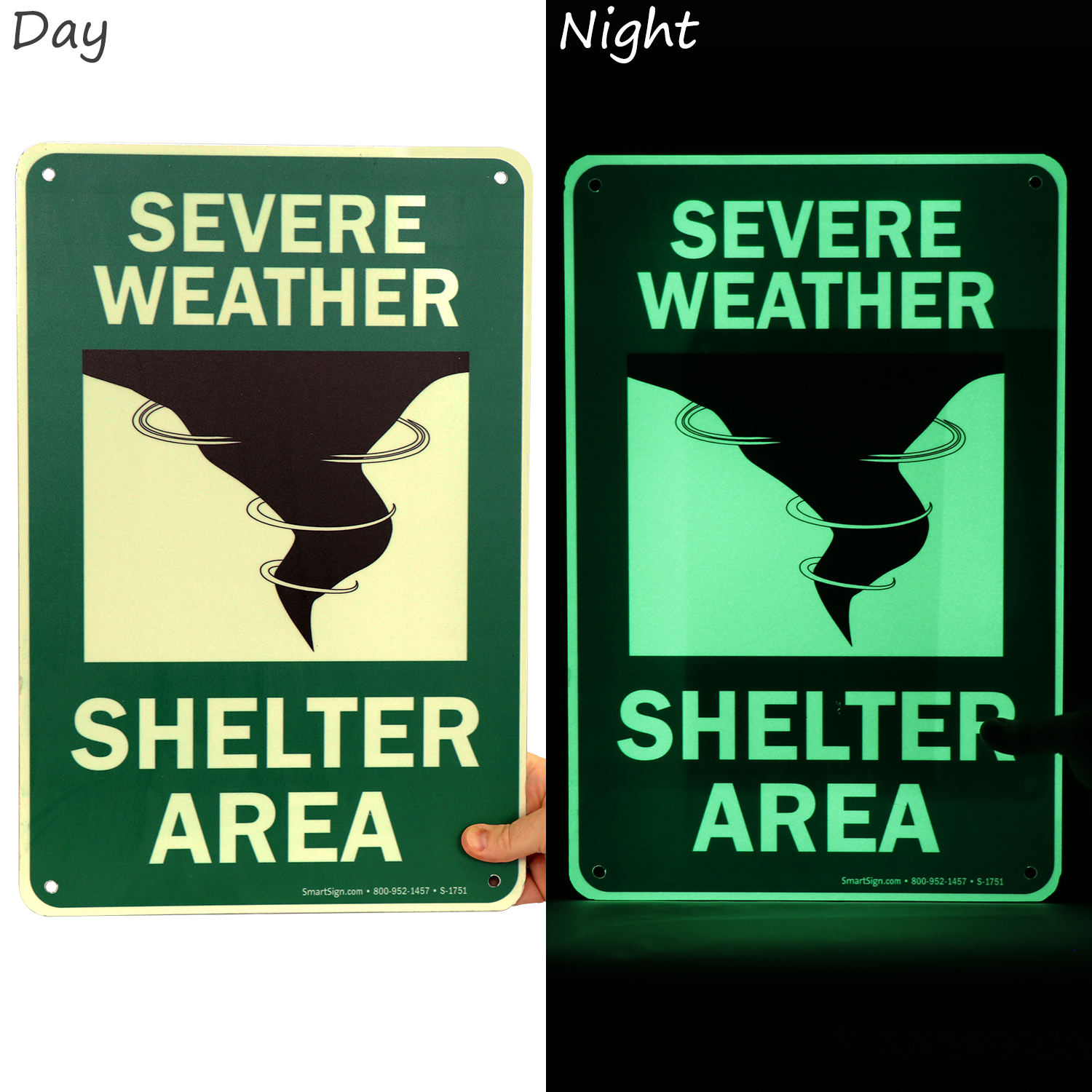 Don't be caught unprepared in a fire emergency. Use a "severe weather shelter area (with graphic)" sign. Not only do signs look good, they work!