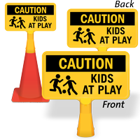 We certainly do. You may choose from our heavy-duty reflective cone sleeves and double-sided ConeBoss signs that fit on standard traffic cones and may be moved as desired. Alternatively, you may order a sign base for your aluminum slow-kids-at-play sign and keep a portable sign handy at all times!.