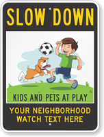 Yes, it is. We offer a variety of customizable Kids-at-play sign templates that let you add information such as speed limit, warning message, community/neighborhood name, and any rules you may want to convey.