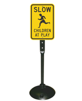 We certainly do. You may choose from our heavy-duty reflective cone sleeves and double-sided ConeBoss signs that fit on standard traffic cones and may be moved as desired. Alternatively, you may order a sign base for your aluminum slow-kids-at-play sign and keep a portable sign handy at all times!.
