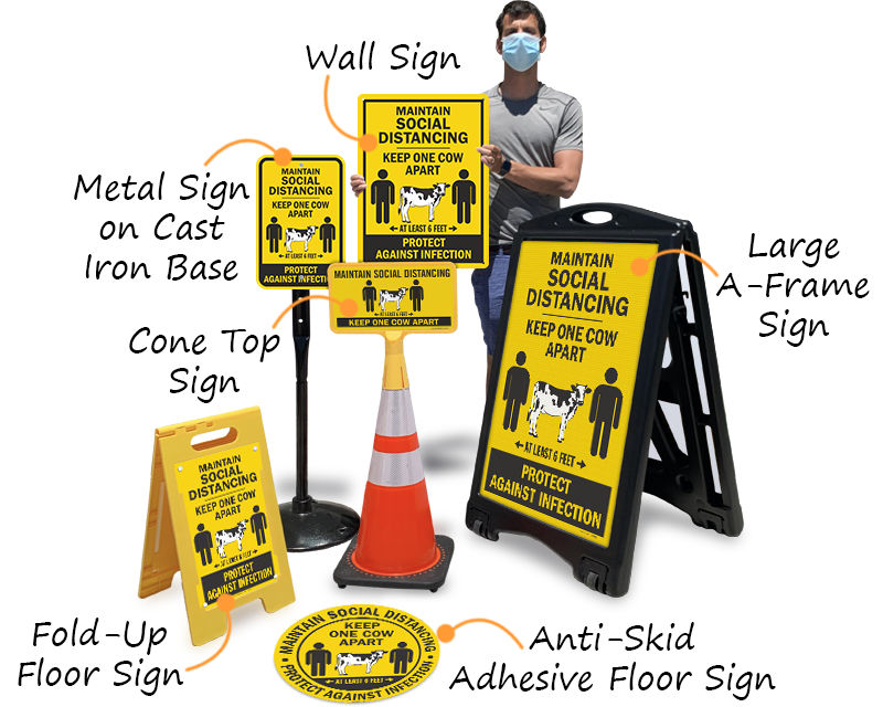 • • Choose from a large assortment of portable signs, floor marking tapes and adhesive footprint decals. Our signs for maintaining social distance politely urge people to comply at public places like stores, offices, supermarkets & restaurants.