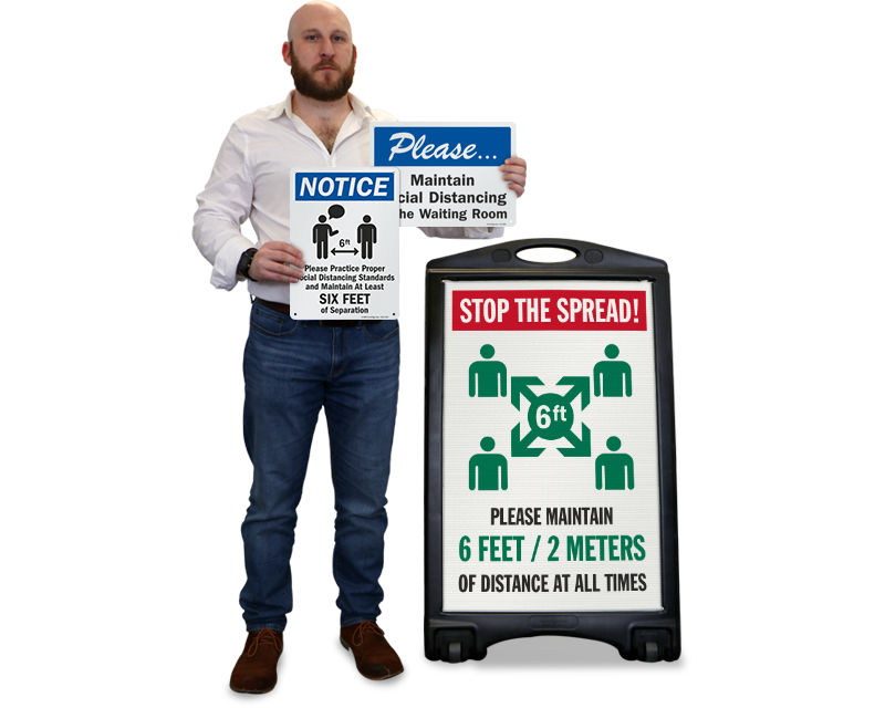 During this time of crisis, social distancing has become the most integral weapon of frontline defense. Reduce the strain on the healthcare system by using social distancing signs to generate awareness and stop the spread.