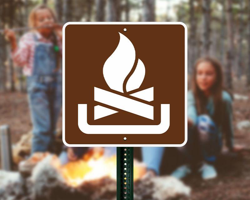 Utilize Campfire Signs to direct guests to approved fire pit locations. Our signs meet MUTCD guidelines for campground signage featuring universally recognized symbols.