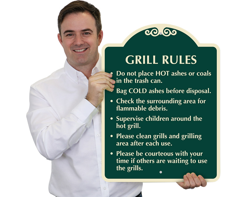 Grill rules signs provide essential safety guidelines on how to use grills safely, maintain proper distances from flammable materials, and handle open flames responsibly. Our Grill Rules Signs offer a complete solution to maintain cleanliness, ensuring the safety of your campsite and keeping your guests well-fed.