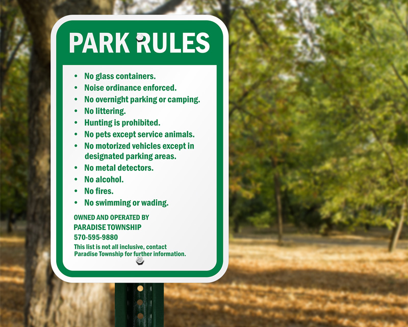 Arrange your campsite using Park Signs. Whether you aim to encourage campers to maintain a clean campsite, notify them of the park's closing hours, or caution against fishing, these campground signs are the perfect solution. Effectively convey essential park regulations to visitors and ensure a well-ordered environment.
