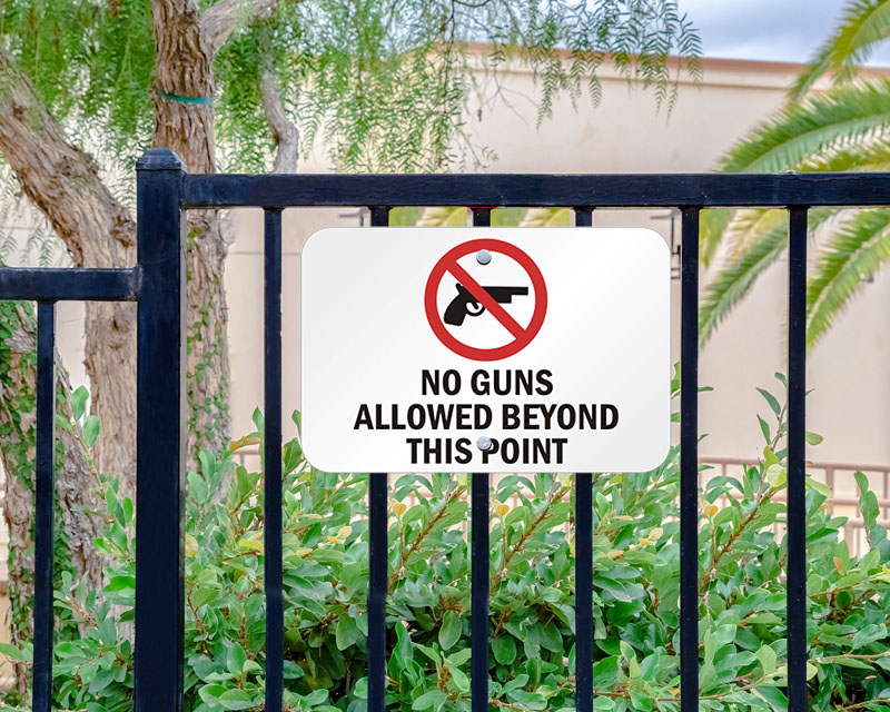 • • We offer both "No Guns Allowed" signs and "Guns Allowed" signs (respecting Second Amendment rights). You can choose the one that aligns with your preferences.