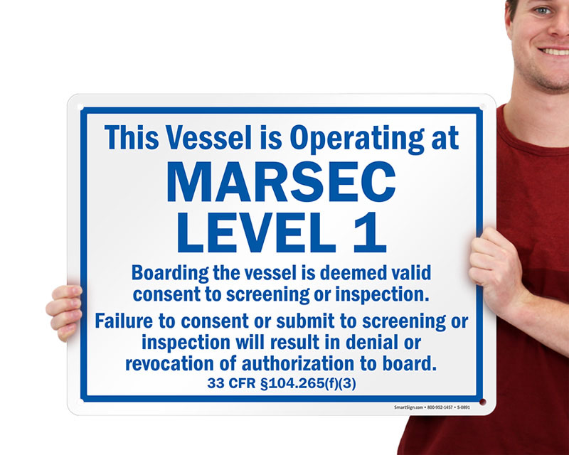 MARSEC signs serve as a critical means of communicating the current security threat level at maritime facilities. Provide a quick and easily understandable visual indicator of the security threat level and warn against potential security risks, allowing for appropriate and swift response in case of an emergency.