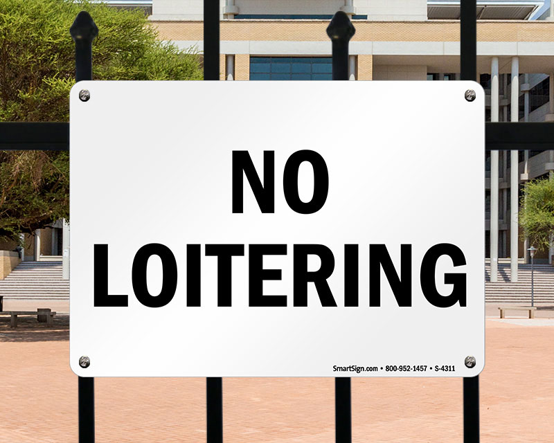 Looking to discourage excessive gatherings around your premises? Install a 'No Loitering' sign with bold messaging and vibrant colors to clearly convey your stance against trespassing.