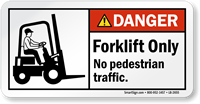 Enhance workplace safety and maintain OSHA compliance with high-visibility forklift signs designed for warehouses, factories, and distribution centers. Properly placed forklift safety signs help employers meet OSHA forklift requirements by clearly marking hazard zones, identifying traffic routes, and reminding workers that only certified forklift operators are permitted to use powered industrial trucks. These signs also alert pedestrians to stay aware of moving equipment and keep a safe distance around forklift operations.