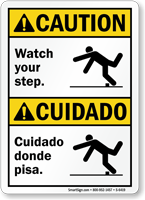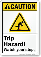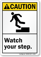 To mitigate the risk of slip, trip, and fall accidents, as well as the associated loss of work time, it is advisable to employ 'Watch Your Step' signs within your facility. By utilizing caution signs or prompting individuals to be mindful of their footing, you can prevent injuries. It's important to note that not all surfaces or falls are smooth.