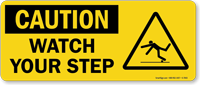 To mitigate the risk of slip, trip, and fall accidents, as well as the associated loss of work time, it is advisable to employ 'Watch Your Step' signs within your facility. By utilizing caution signs or prompting individuals to be mindful of their footing, you can prevent injuries. It's important to note that not all surfaces or falls are smooth.