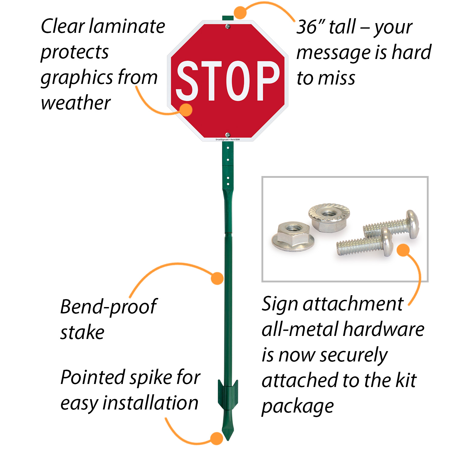 - Sign comes pre-assembled for easy and quick installation on any ground.