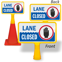 most are designed to fit standard 18-inch or 28-inch traffic cones. The Cone top sign simply slides down over the cone's tapered top.