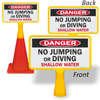 They are extremely visible and portable. placing a cone with a "no diving" sign right at the edge of the shallow end is a physical barrier that is harder to ignore than a wall sign. They are a type of portable pool sign.