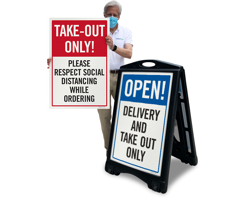 • • Pick from a variety of our available Take Out and Delivery Signs; from a simple sticker to a large, portable A-Frame to use in multiple locations! Also find our easy-to-customize templates. Create your own sign in just a few steps.