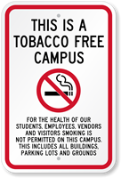 Communicate a "no tobacco" policy. Tobacco-Free Zone Signs forbid smoking and tobacco use by students, staff, and visitors on school property.