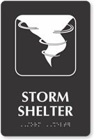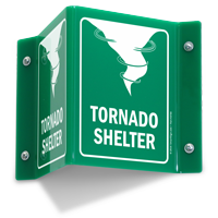 Tornado Shelter signs point the way to the emergency shelter. In dangerous situations, time is of the essence and well placed signs are crucial. For areas with frequent tornados, a tornado shelter is important. But without signs directing people, the shelter won't fulfill its purpose. Post signs to ensure that everyone knows the way to the tornado shelter in case of emergency.