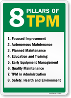 • • With 5S and TPM signs, employees spend less time searching for tools or materials, eliminating delays.