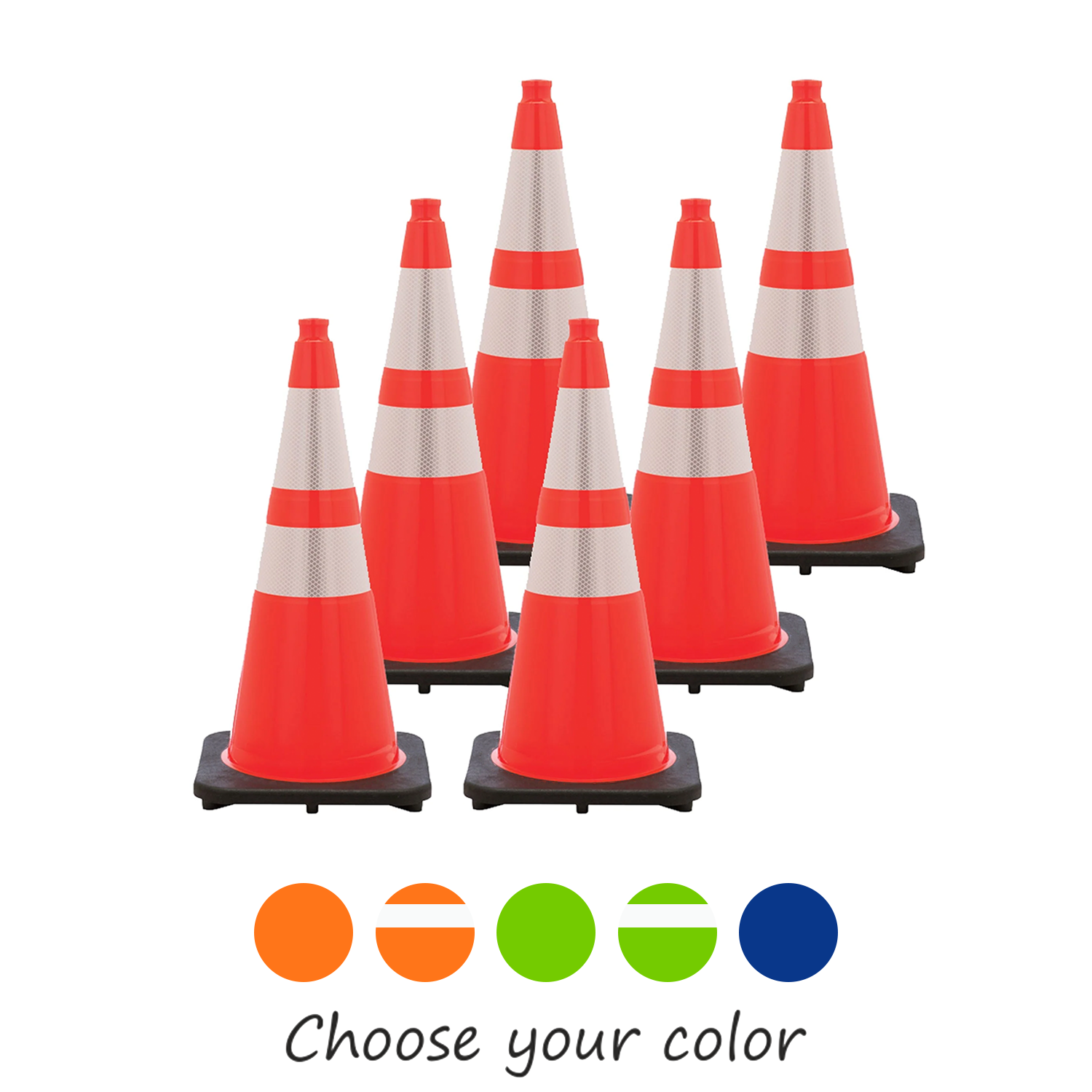 - Reflective cones are available in Traffic Orange and Safety Green featuring a reflective collar. These offer great visibility in dark.