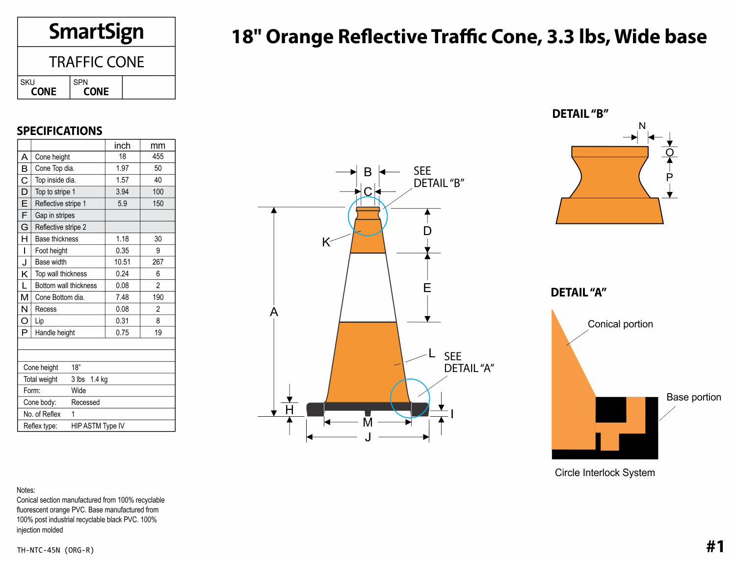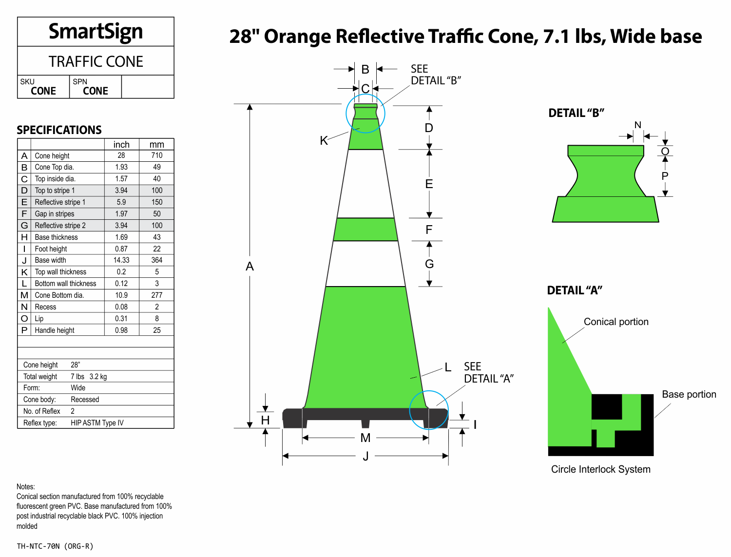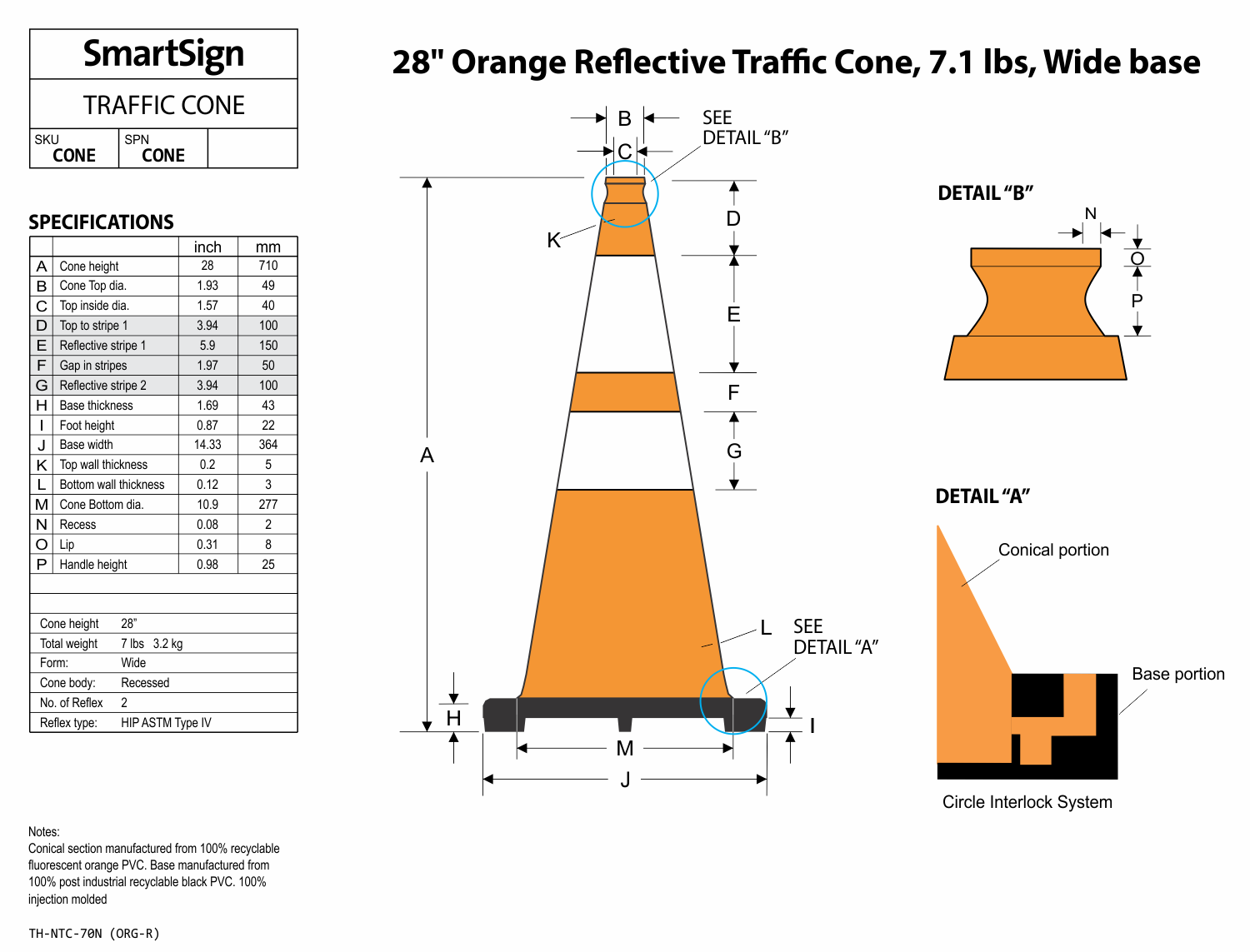 Size: 10.25" x 9.5" Material Type: Reflective Polyester Cone Sleeves Verified PurchasePAC fire lane blocking prevention