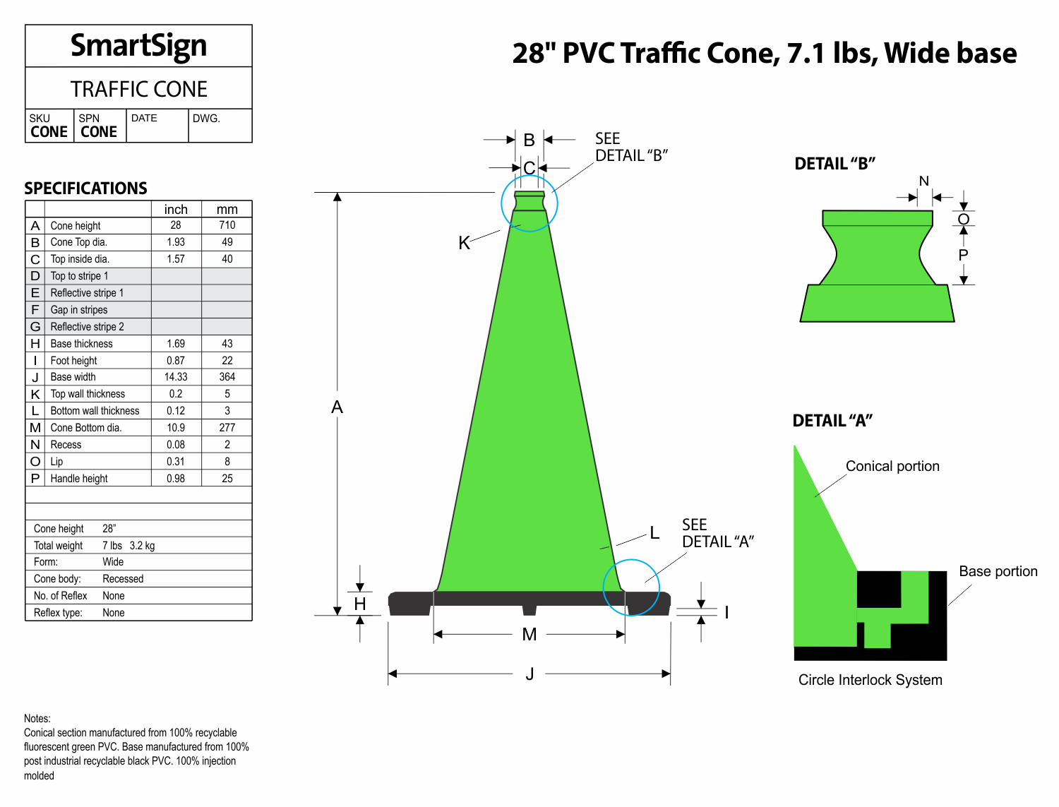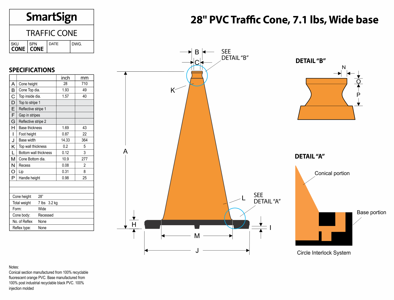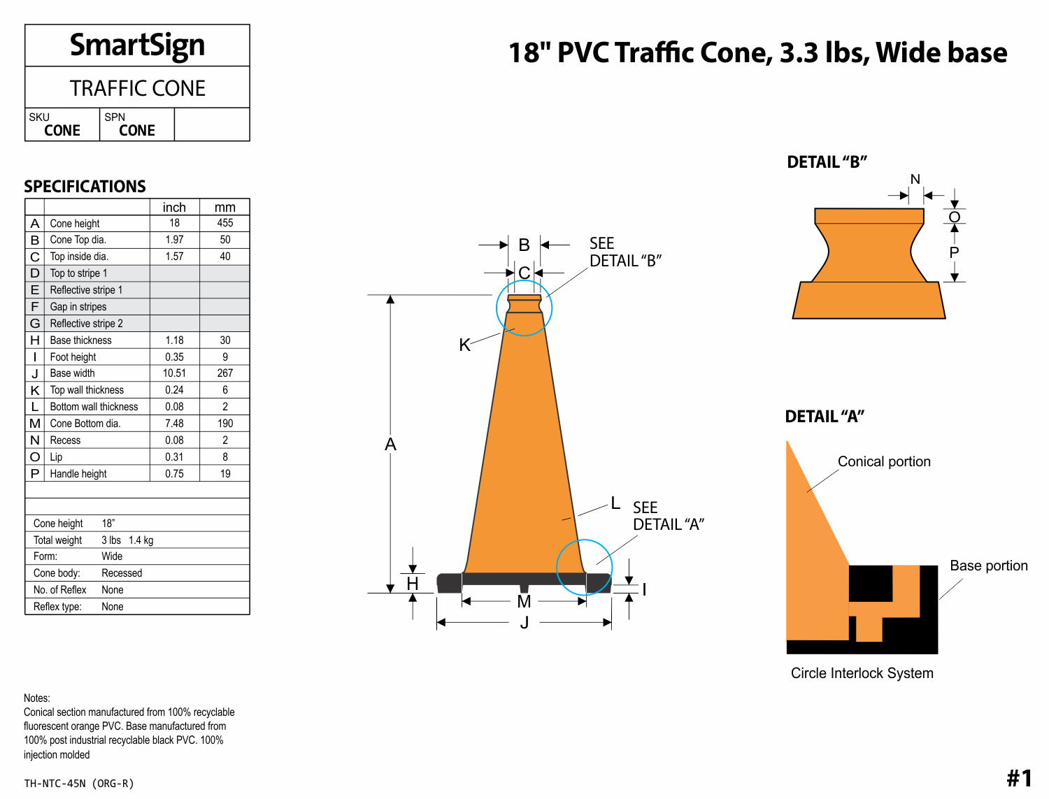 Size: 10.25" x 9.5" Material Type: Reflective Polyester Cone Sleeves Verified PurchasePAC fire lane blocking prevention