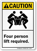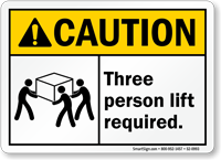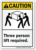 Two person lift labels warn workers that a load is too heavy or bulky for one person to lift safely. These labels help prevent back injuries and support proper material handling practices. You can explore all options on our two person lift labels page or choose a product such as the multi person lift required ANSI label. OSHA’s ergonomic guidelines support team lifting for heavy loads.
