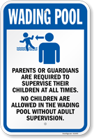 Yes, even if the main pool has a lifeguard, the wading pool often does not. A "no lifeguard - parents must supervise" sign is critical for these separate areas. You can also find bilingual versions of these warnings.