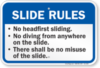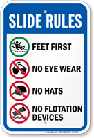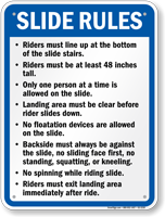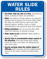 Don't think of these signs as fun blocks--think of them as techniques to help you have an even better slide! Enhance safety and fun with Water Slide Rules Signs!