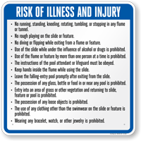 Height limits (e.g., "must be 48 inches tall") ensure the rider is physically large enough to manage the slide's speed and the pool depth at the exit. This is a standard inclusion on water slide rules signs.