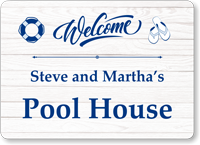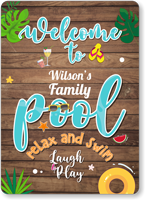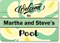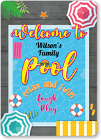 Yes, you can add the name of the facility ("welcome to shady oaks pool") and specific amenity rules to make it personal and relevant using our custom swimming pool signs tool.